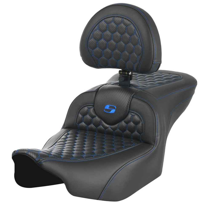 SADDLEMEN 0801-1749 823-07-189B1 Roadsofa™ Seat - with Backrest - Honeycomb - Blue Stitch - FLTR/FLHX 23-24