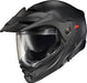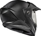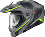 The EXO-AT960 Modular Helmet has evolved from one of the most popular Adventure Motorcycle helmets on the market; the EXO-AT950. Maintaining its high value (in addition to U.S. DOT Certification), ScorpionEXO has now added the latest ECE 22.06 Safety Rating, which requires a wider range of testing than the previous 22.05 certification. The EXO-AT960 can be used as a full face ADV helmet with external peak visor attached, or the peak visor can be removed for a more aerodynamic touring helmet. The oversized eye port is extremely wide for greater peripheral vision and downward visibility, and the modular chin bar can be conveniently flipped up. The internal drop down Speedview® sun-visor allows you to adjust to changing lighting conditions throughout the day. Additionally, the no-fog Everclear® face shield can be removed and you can use the EXO- AT960 with goggles for off-road use. Three shell sizes made of Advanced LG® Polycarbonate and dual density EPS, result in a helmet that is light weight, strong, and protective. And for those who need to stay connected, the EXO-AT960 was specifically designed to integrate with the new EXO-COM® BlueTooth® Communicator Kit while the large speaker pockets also make it compatible with many other com systems in the market.